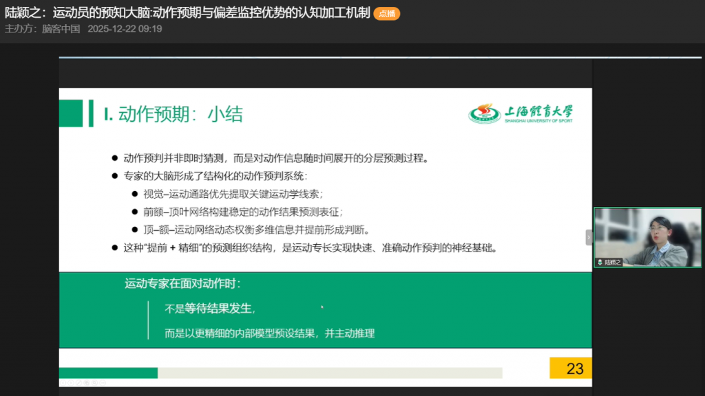 本次直播系统揭示了运动员动作预期优势的核心——内部模型的完善与偏差监控的精细化加工,为运动训练与认知科学研究给予了重要参考。