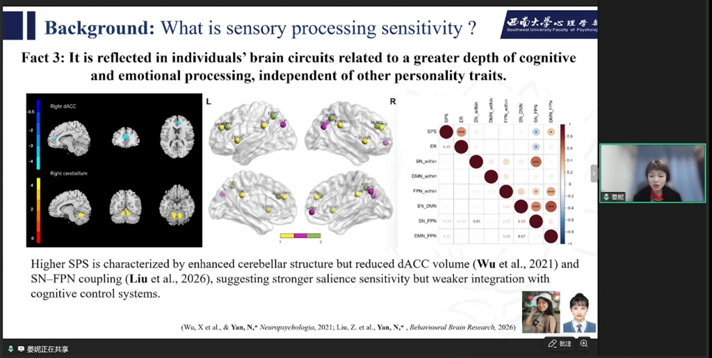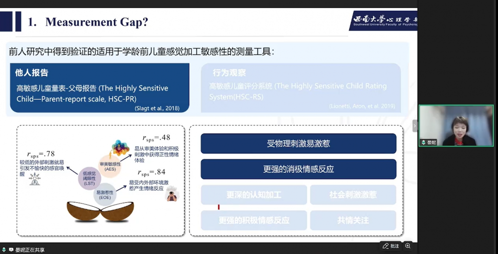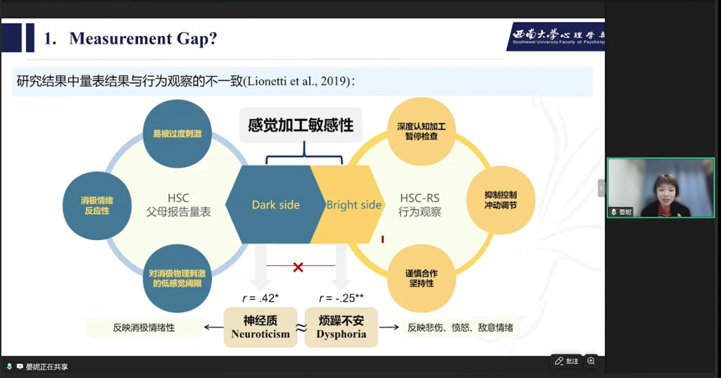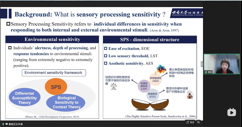 3月12日晚,西南大学心理学部晏妮教授做客脑客中国科研直播间,进行了以“敏感特质与差异开展:构建儿童差别易感性的整合模型”为主题的专业分享。晏妮教授及其团队近年来聚焦儿童感觉加工敏感性这一核心特质,从核心概念、研究疑问、研究发现三个板块,探讨了儿童在面对家庭环境影响时所表现出的差别易感性机制,并结合实证研究成果展开系统阐述,以下为本次直播的主要内容回顾: